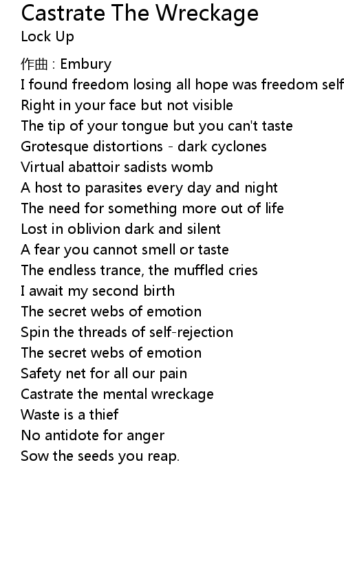 | Castrate the mental wreckage | |