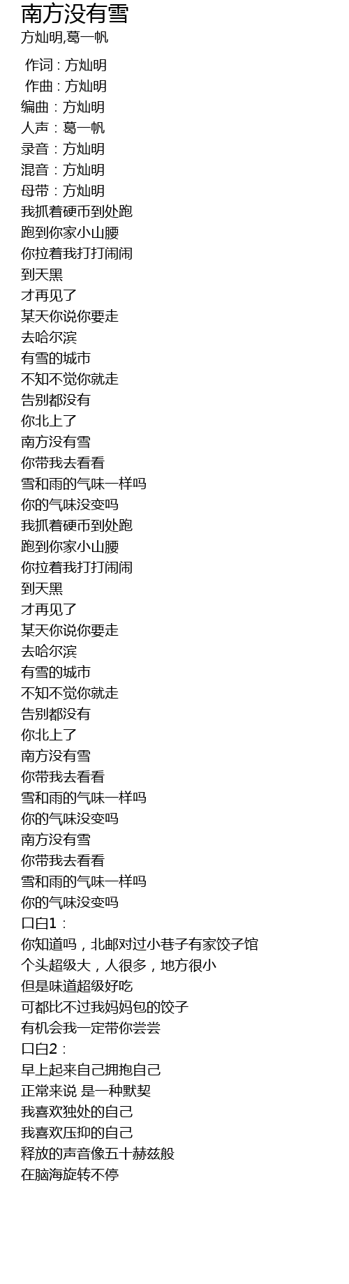 | [00:48.401] | nán fāng méi yǒu xuě |