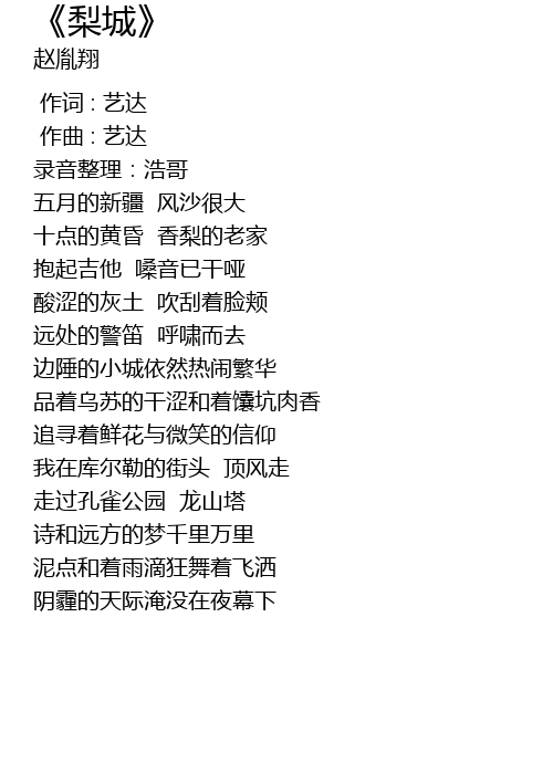 | [01:22.952] | 我在库尔勒的街头 顶风走 |