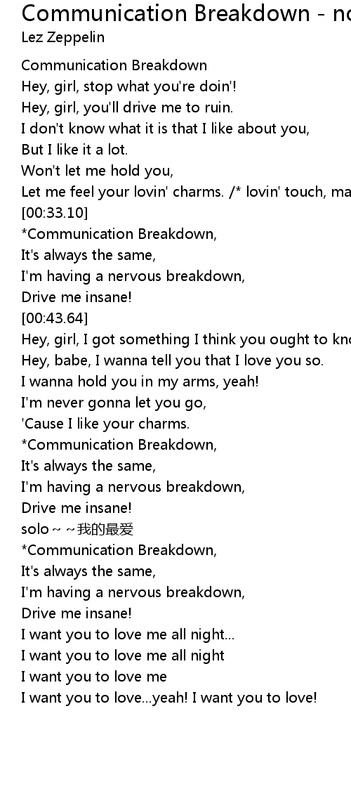 | [00:33.50] | Communication Breakdown, |