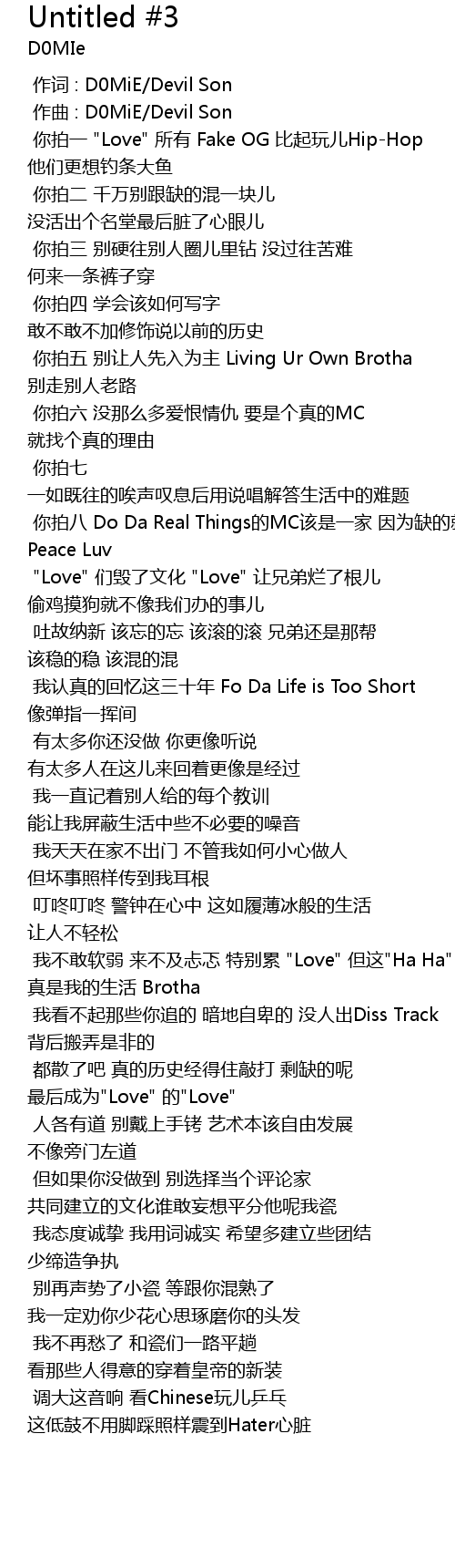 | [00:26.635] | ni pai yi " Love" suo you Fake OG bi qi wan er HipHop ta men geng xiang diao tiao da yu |