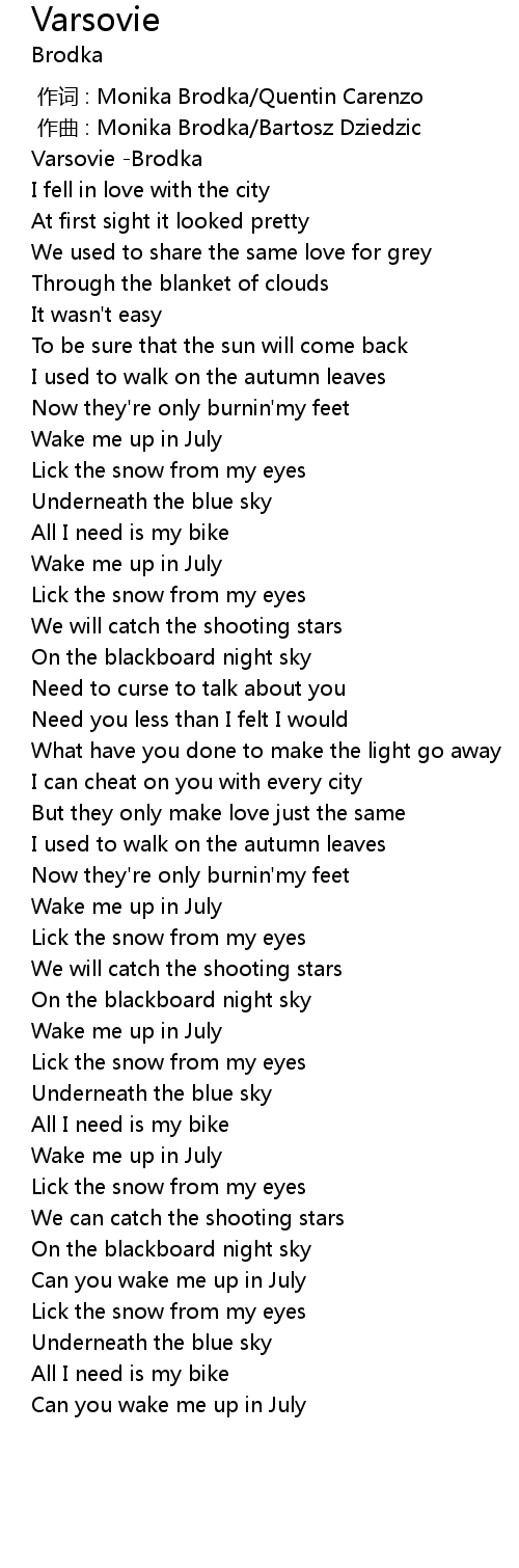 | [00:00.000] | zuo ci : Monika Brodka Quentin Carenzo |