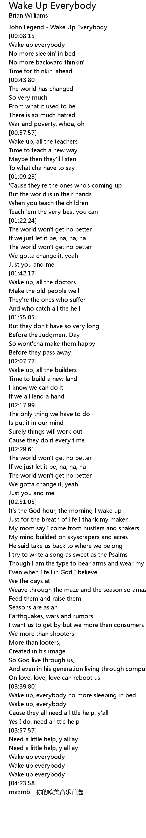 | [00:02.03] | John Legend - Wake Up Everybody |