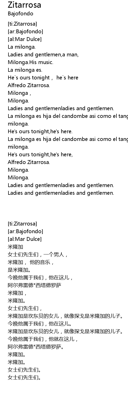 | [02:56.83] | La milonga es hija del candombe asi como el tango es hijo de la milonga. |