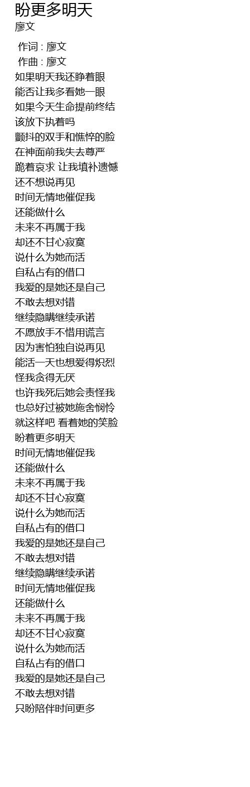 | [03:44.671] | pàn zhe gèng duō míng tiān |