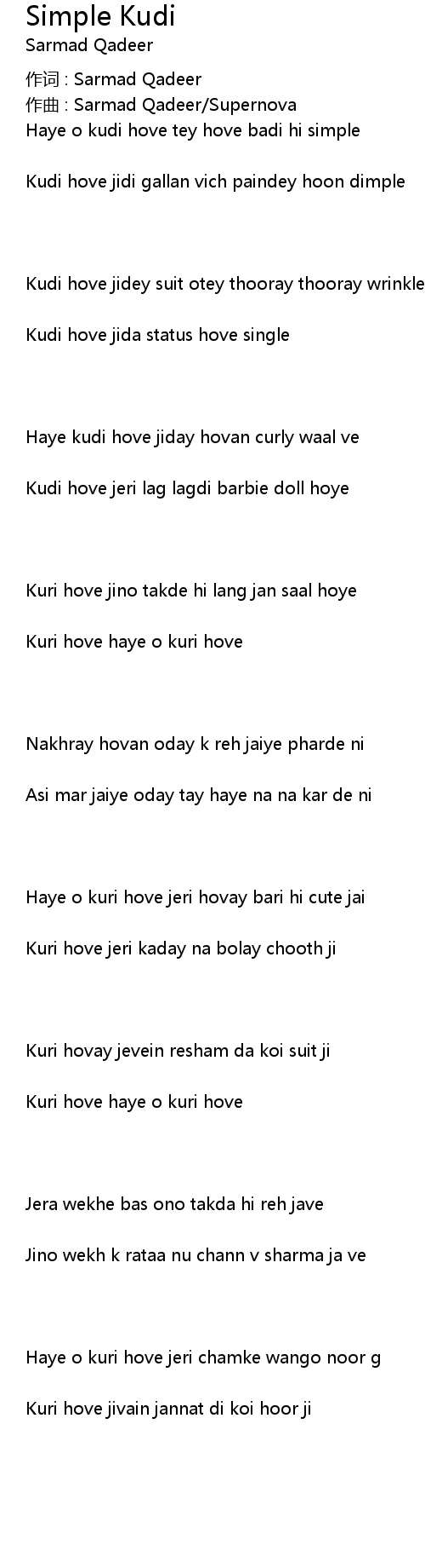 | Haye o kudi hove tey hove badi hi simple | |