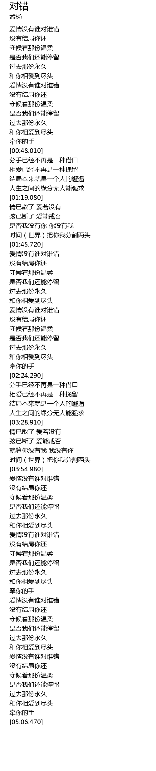 | [00:30.430] | ài qíng méi yǒu shuí duì shuí cuò |