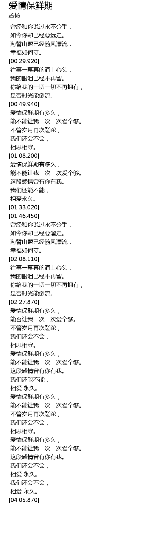 | [02:28.370] | 爱情保鲜期有多久, |