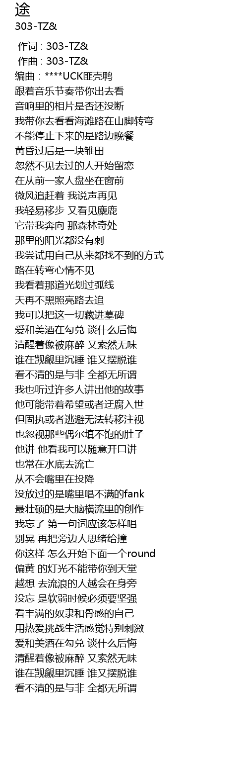 | [00:05.283] | 编曲:****UCK匪壳鸭 |