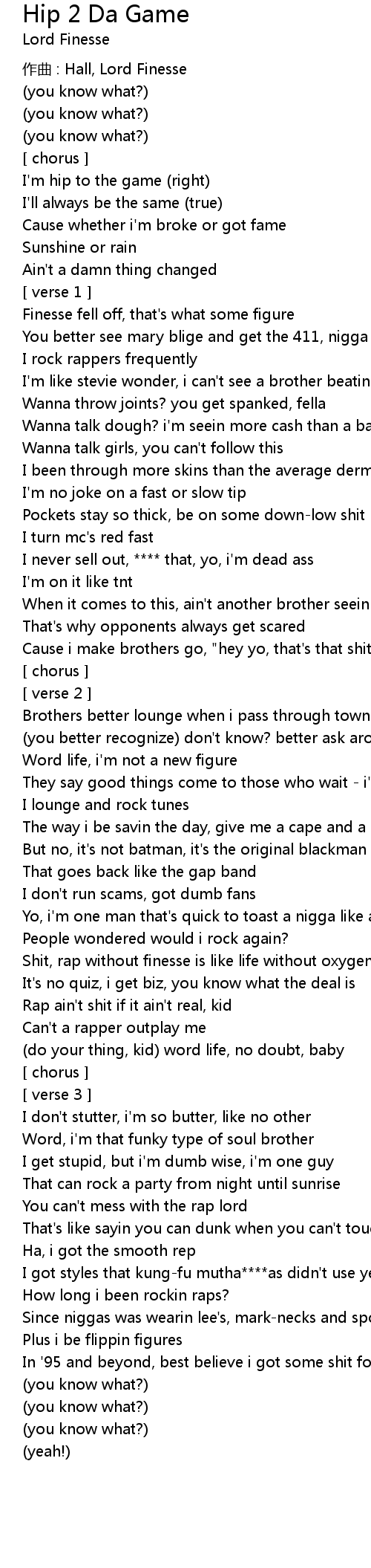| zuò qǔ : Hall, Lord Finesse | |