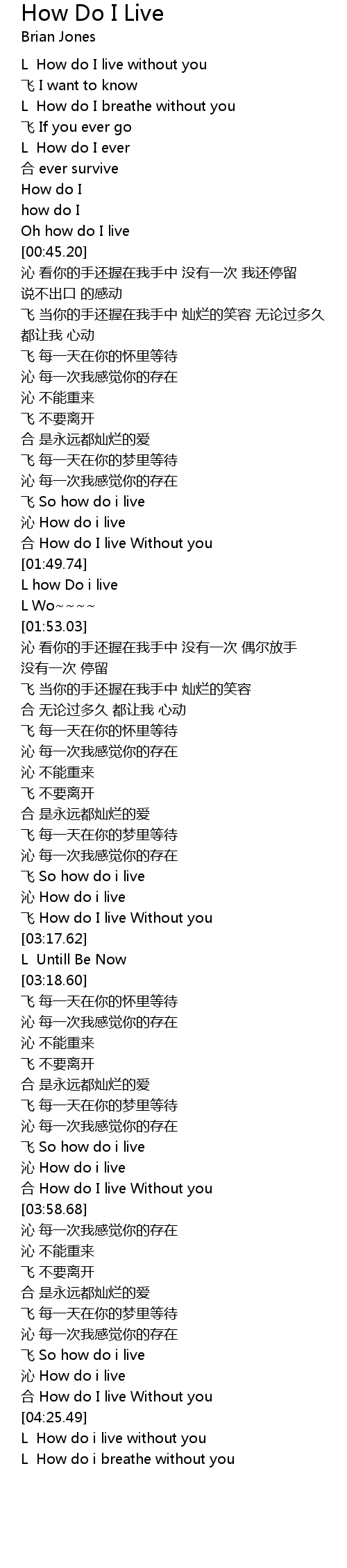 | [01:50.40] | L how Do i live |