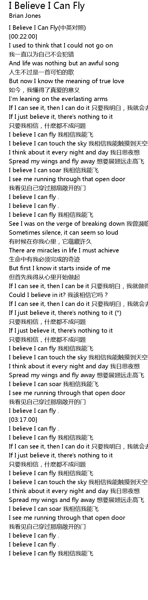 | [00:17.00] | I Believe I Can Fly zhong ying dui zhao |