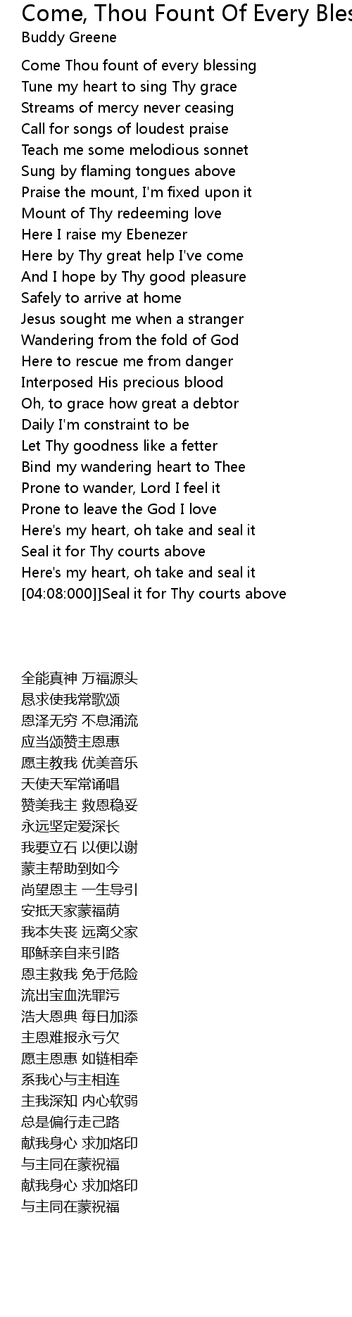 Come, Thou Fount Of Every Blessing (Amazing Grace Album Version) Lyrics