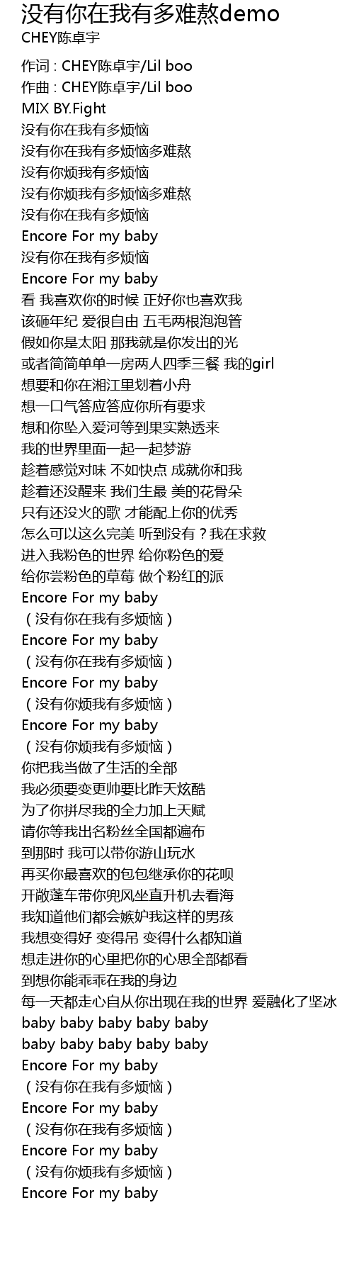 | 作词 : CHEY陈卓宇/Lil boo | |
