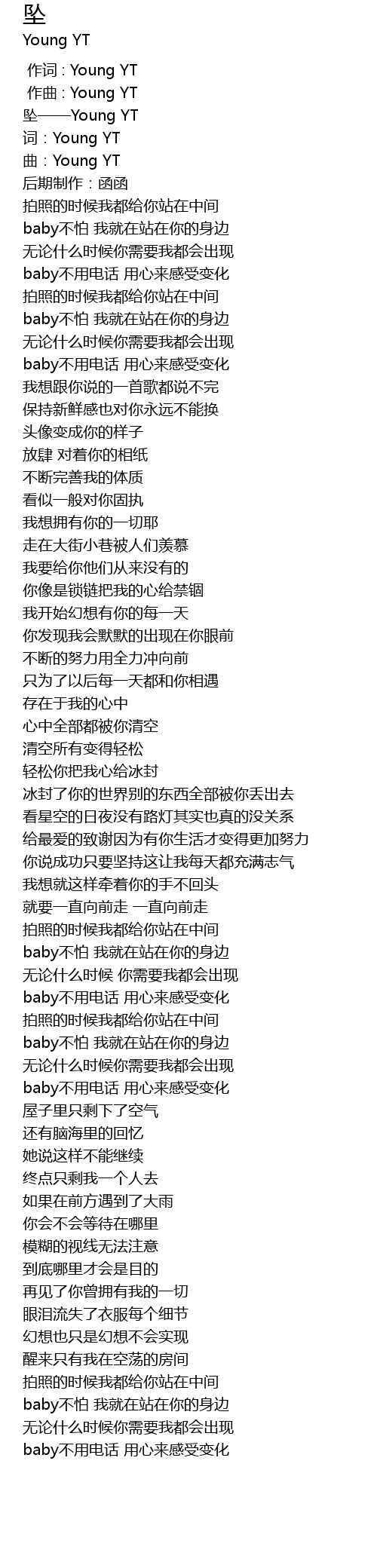| [00:17.192] | baby bù pà wǒ jiù zài zhàn zài nǐ de shēn biān |
