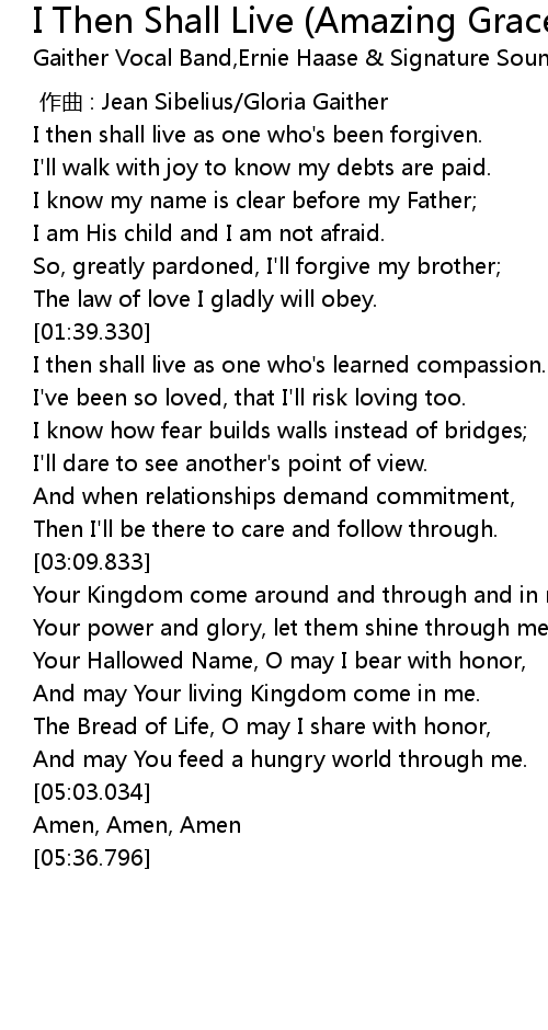 | [00:11.577] | I then shall live as one who's been forgiven. |