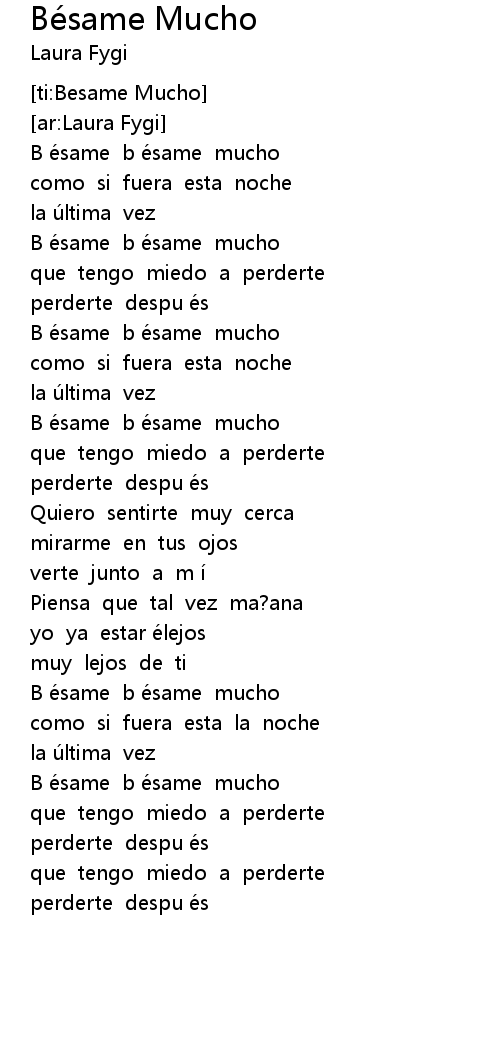 | [00:36.31] | B ésame b ésame mucho |