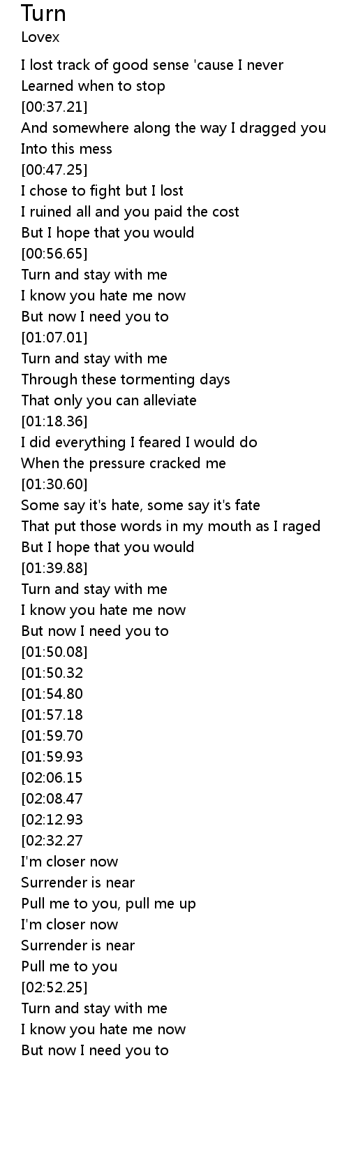 | [02:52.56] | Turn and stay with me |