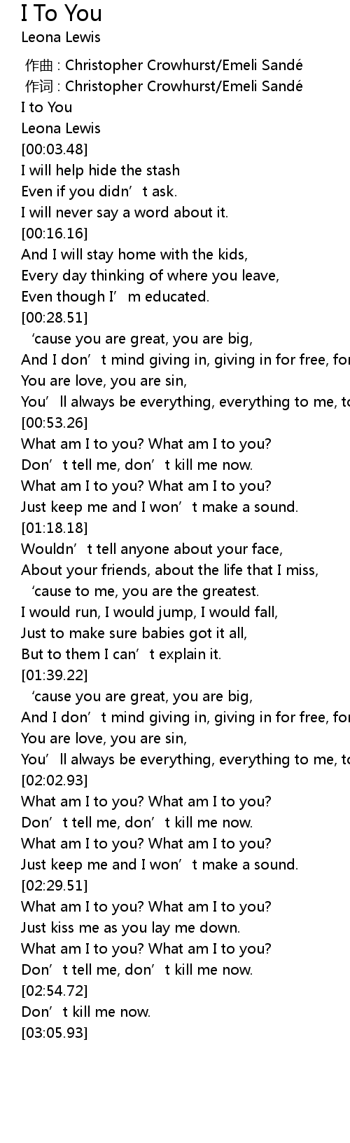 | [02:47.48] | Don’t tell me, don’t kill me now. |