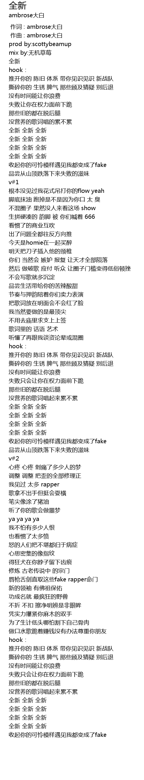 | [00:58.438] | 然后 做破歌 应付 听众 让圈子门槛变得低俗顿挫 |