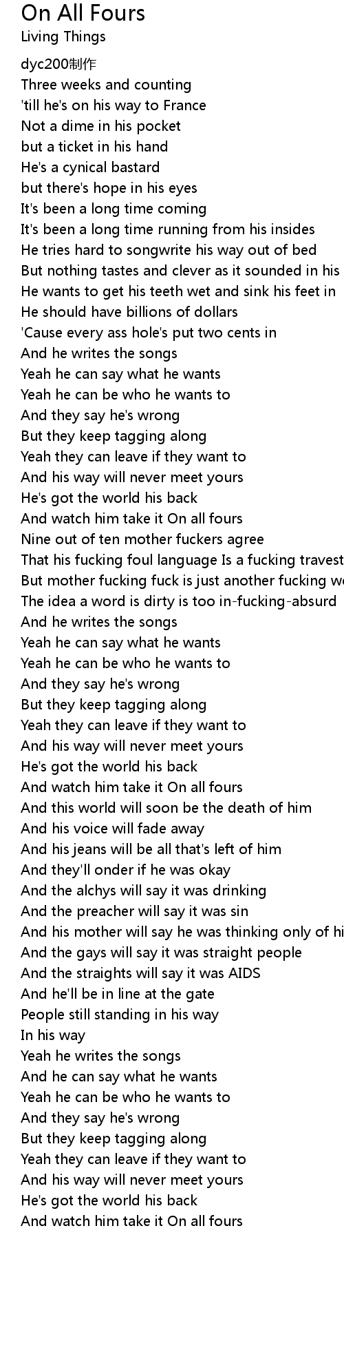 | Song | On All Fours |