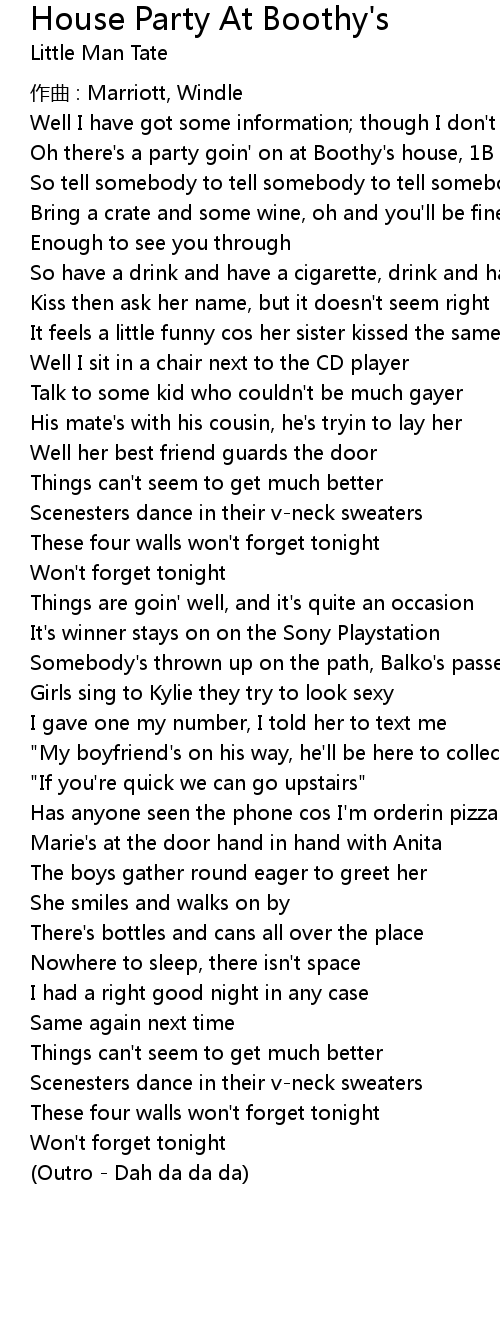 | Oh there' s a party goin' on at Boothy' s house, 1B Lydgate Lane | |