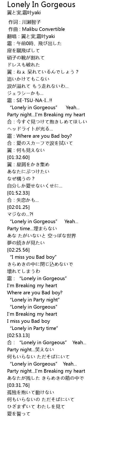 | [03:16.33] | " Lonely in Gorgeous" Yeah... |