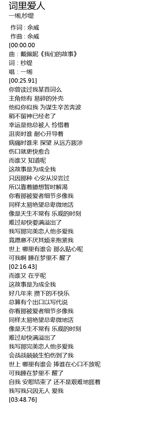 | [03:52.64][00:00.00] | 《词里爱人》 |