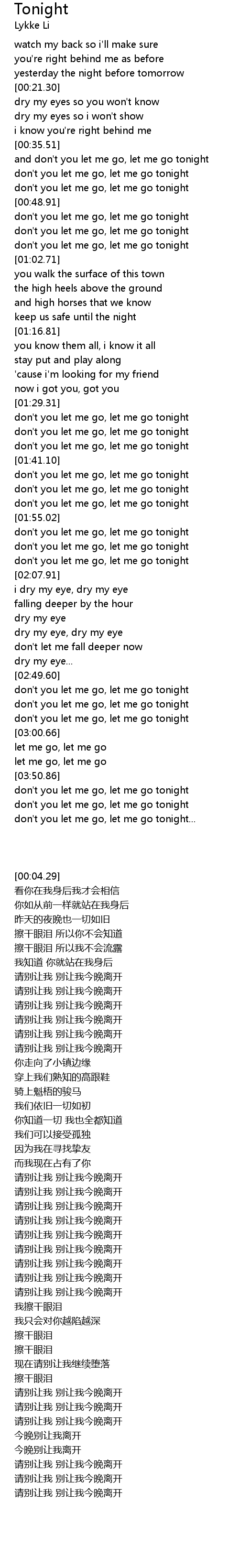 don't you let me go, let me go tonight... |