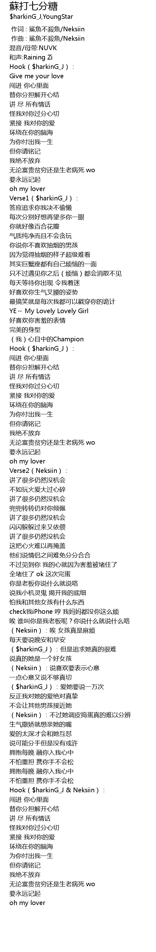 | [01:14.386] | YE~ My Lovely Lovely Girl |