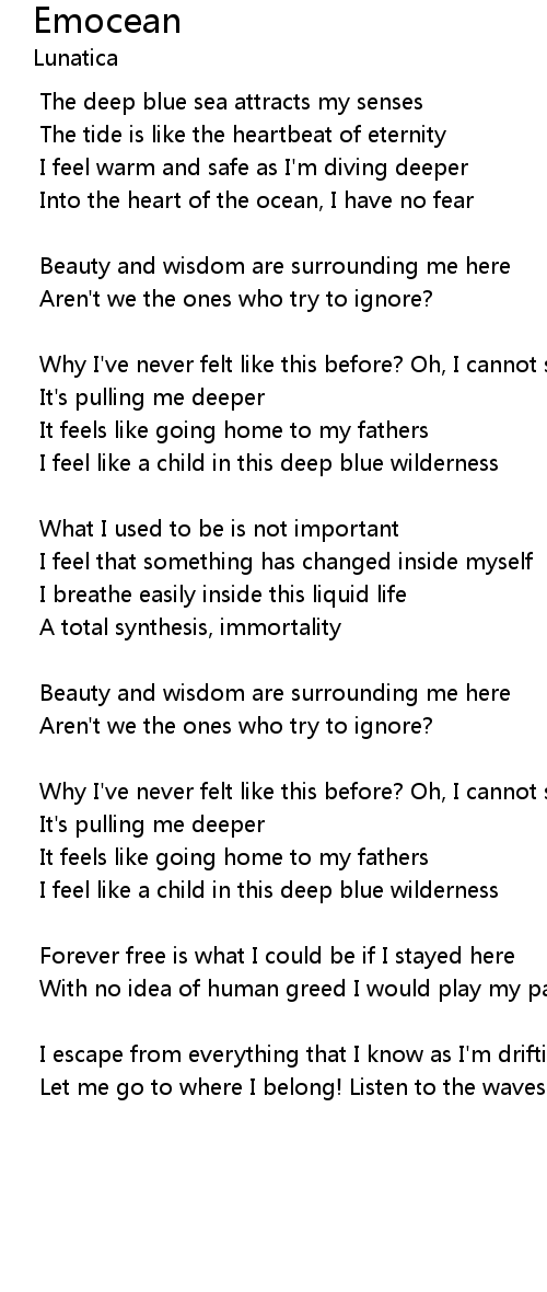 | Into the heart of the ocean, I have no fear | |