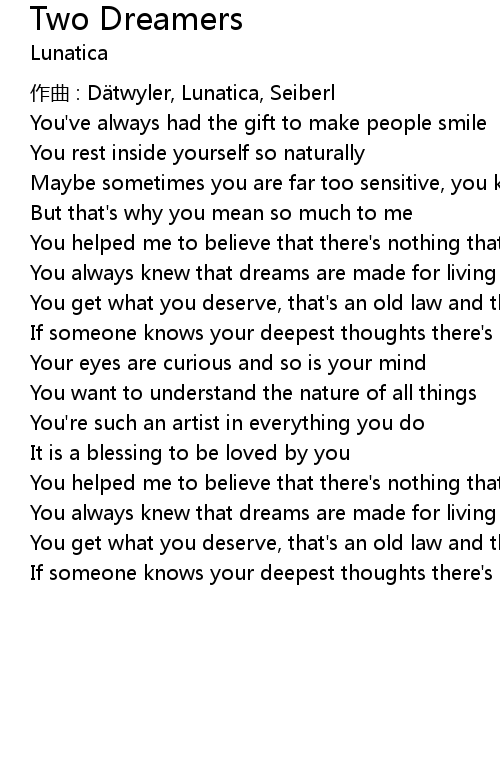 | Song | Two Dreamers |