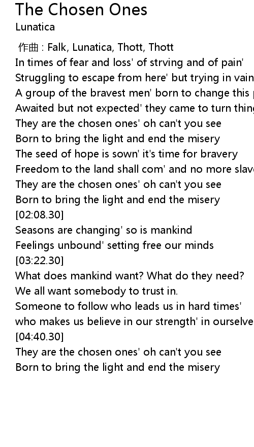 | [04:45.34] | They are the chosen ones' oh can't you see |