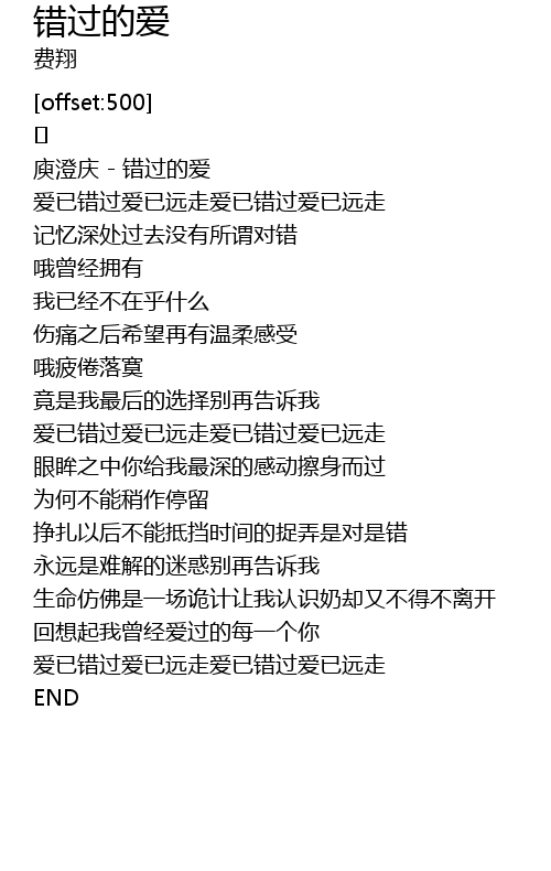 | [03:32.850] | 爱已错过爱已远走爱已错过爱已远走 |