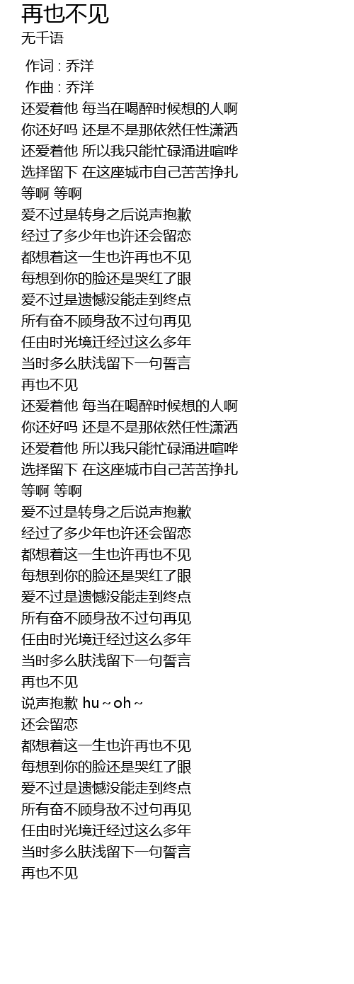 | [02:39.916] | 所有奋不顾身敌不过句再见 |