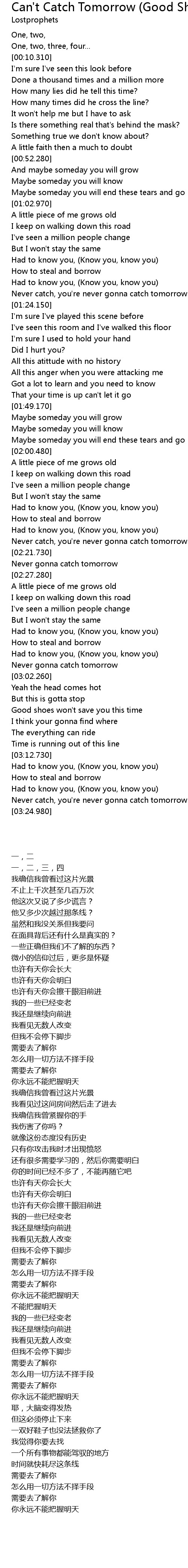 | [03:21.540] | Never catch, you're never gonna catch tomorrow |