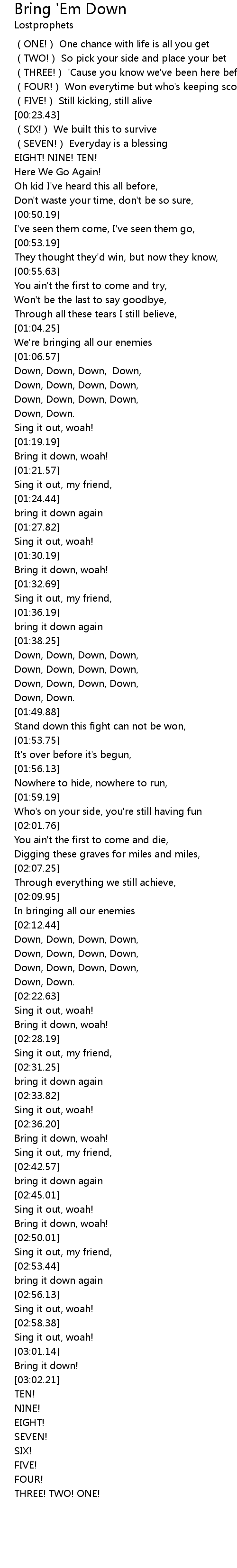 | [00:15.19] | (TWO!) So pick your side and place your bet |