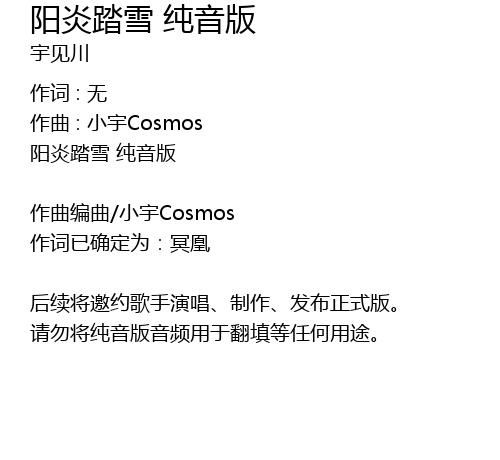 | 后续将邀约歌手演唱、制作、发布正式版。 | |