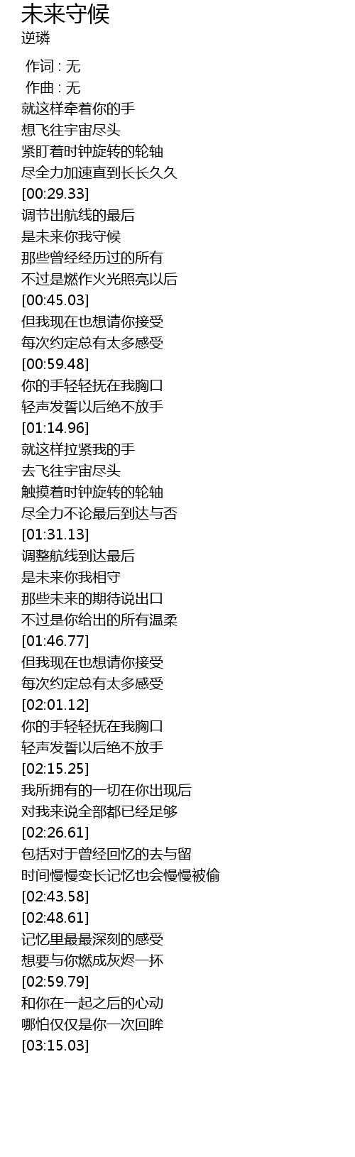 | [00:32.56] | shì wèi lái nǐ wǒ shǒu hòu |