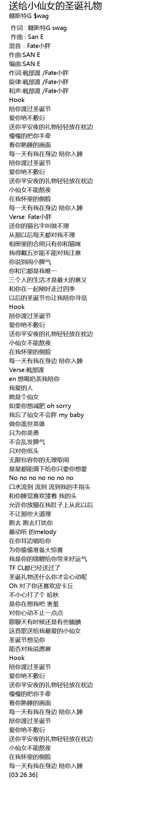 | [02:48.56] | 送你平安夜的礼物轻轻放在枕边 |