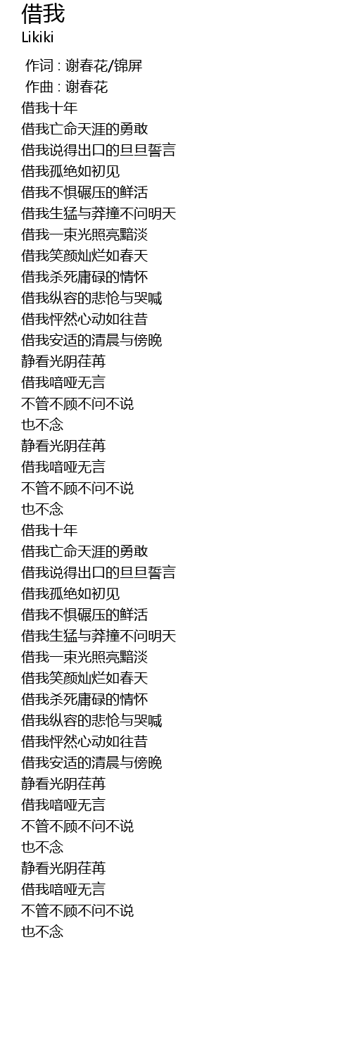 | [00:00.000] | 作词 : 谢春花/锦屏 |