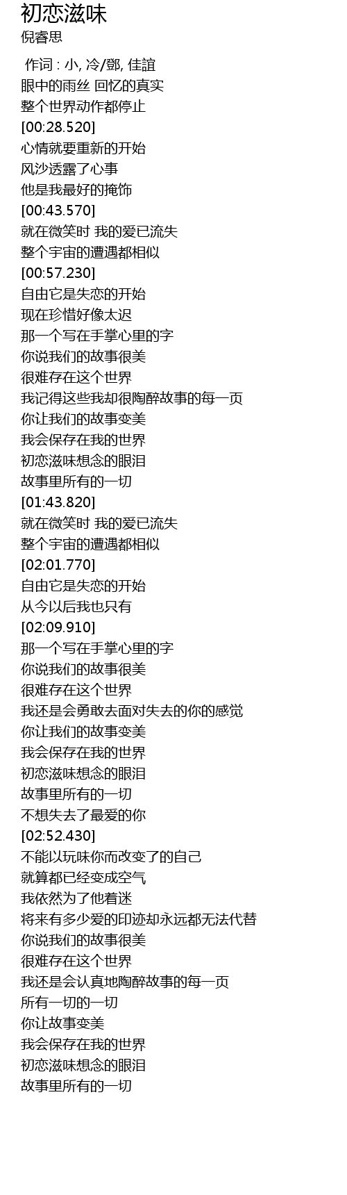 | [03:35.500] | 初恋滋味想念的眼泪 |