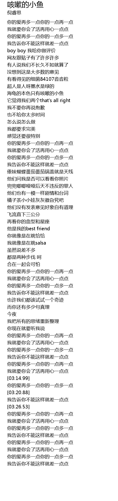 | [03:17.59] | 你的爱再多一点你的一点多一点 |