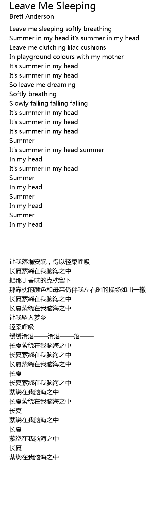 Leave Me Sleeping Lyrics
