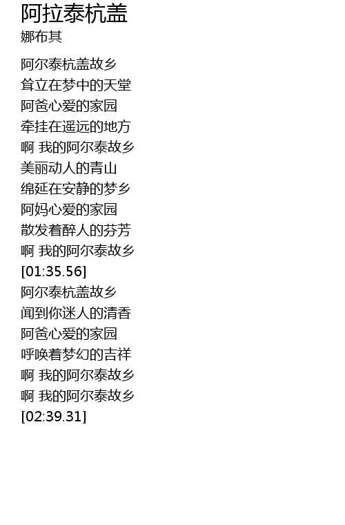 | [02:23.94] | 啊 我的阿尔泰故乡 |