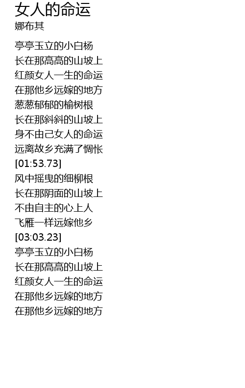 | [01:31.60] | shēn bù yóu jǐ nǚ rén de mìng yùn |