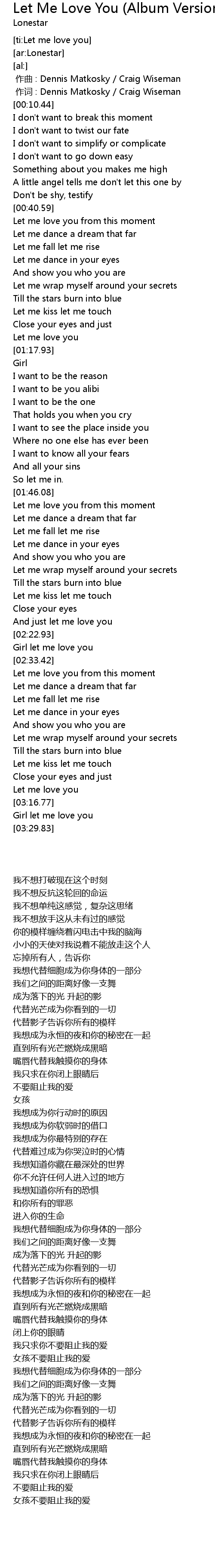 | [02:39.84] | Let me love you from this moment |
