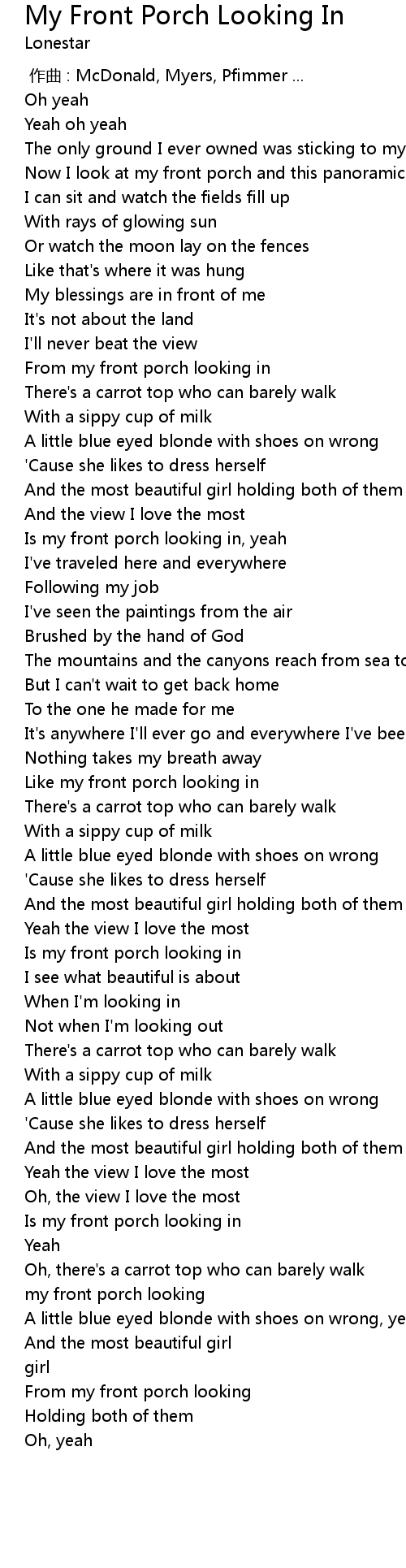 | Song | My Front Porch Looking In |