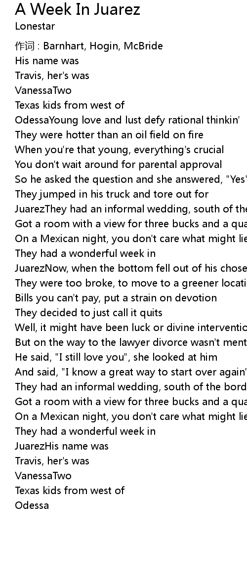 | Song | A Week In Juarez |