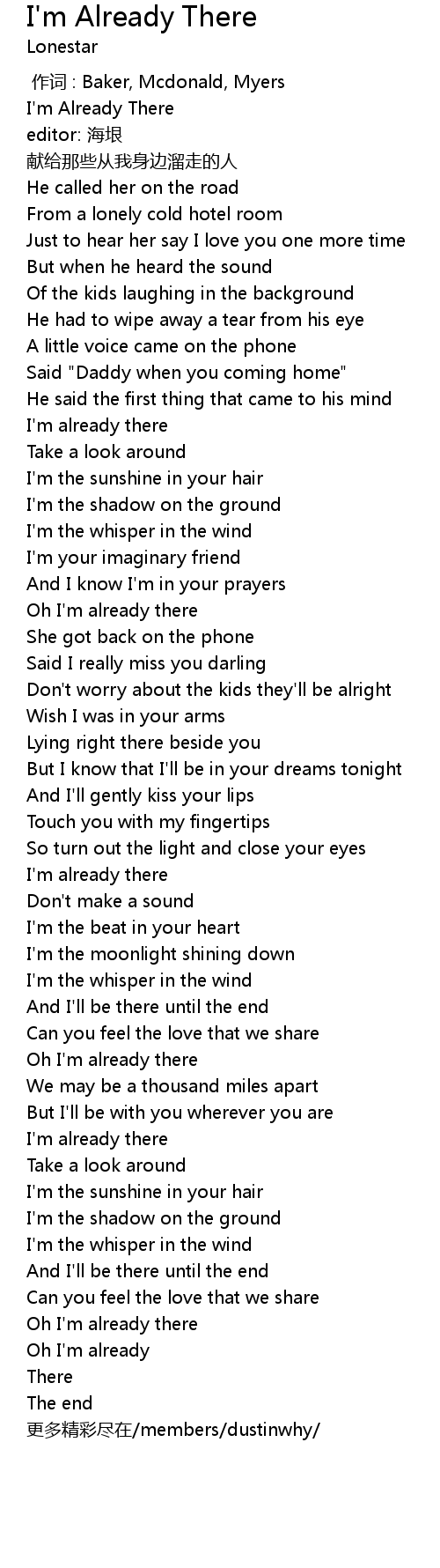 | [00:00.00] | I' m Already There |